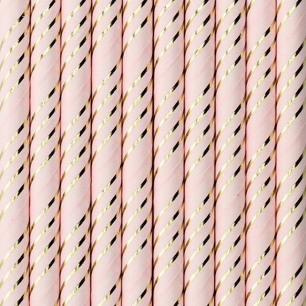 Papírová brčka ve světle růžové barvě se stříbrnými proužky, délka cca 19.5cm.