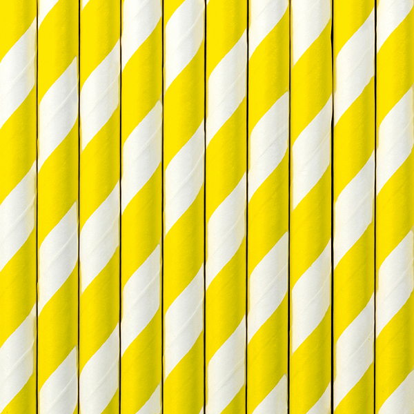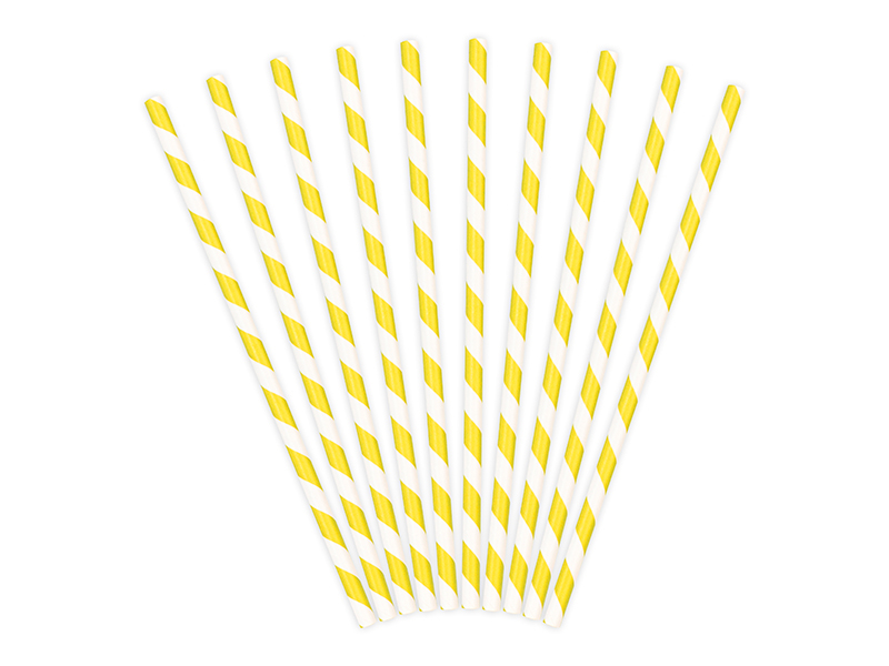 Papírová brčka se žlutobílými proužky, délka cca 19.5cm.
