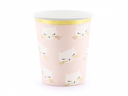 Papírové kelímky s kočičkami ve světle růžové barvě, obsah kelímků je 200ml.
