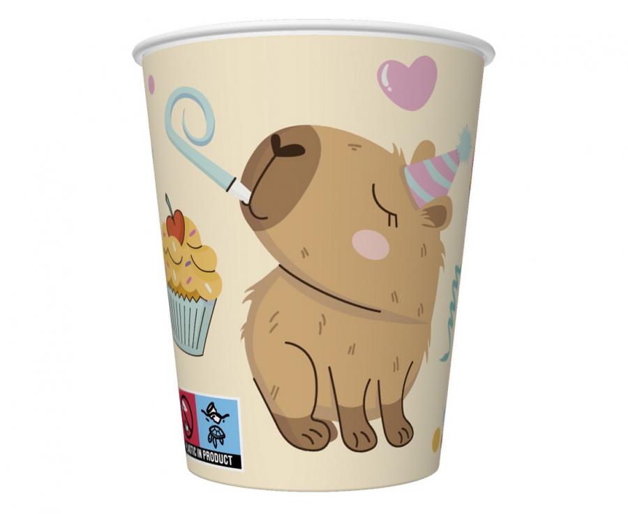 Sada osmi papírových kelímků s kapybarou o objemu 250ml.