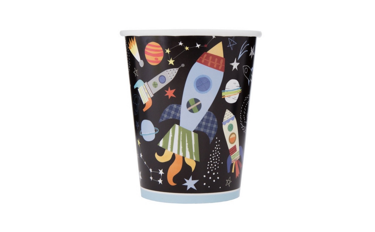 Papírové kelímky v motivu vesmír, určeno pouze pro studené tekutiny. Obsah kelímku je 270ml.