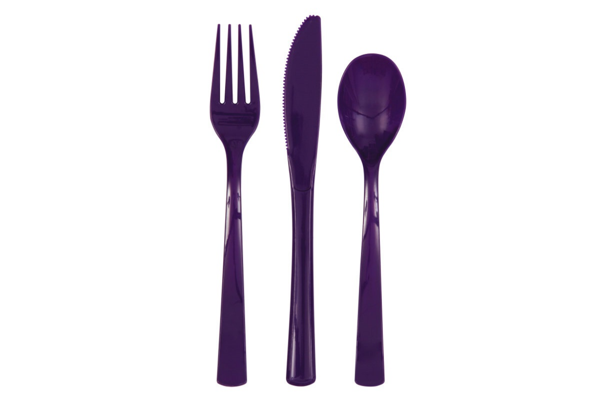 Plastové příbory na party oslavy. Sada obsahuje 6 kusů lžic, 6 kusů nožů a 6 kusů vidliček.