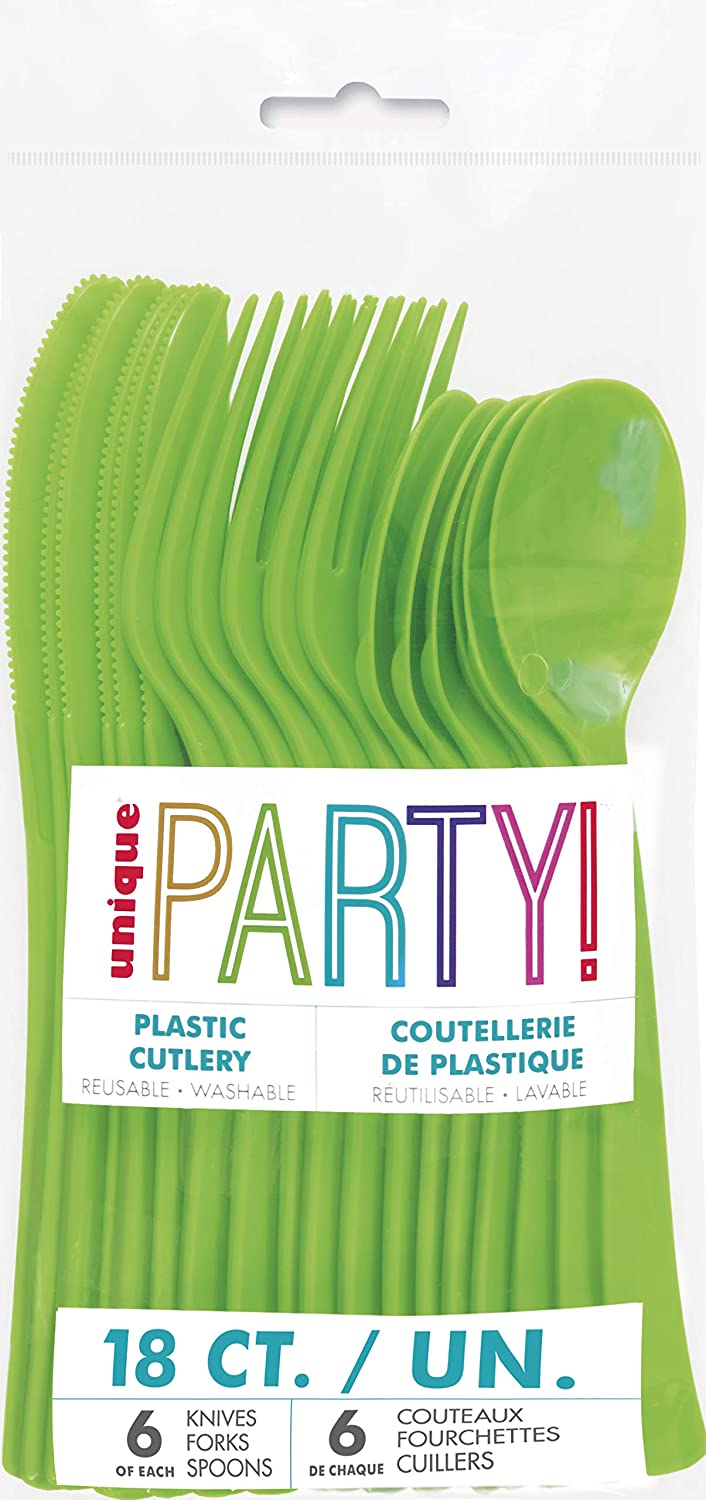 Plastové příbory na party oslavy. Sada obsahuje 6 kusů lžic, 6 kusů nožů a 6 kusů vidliček.