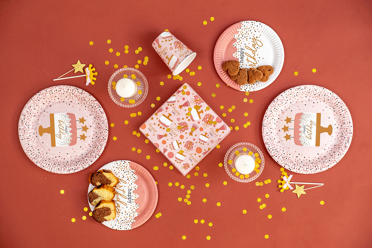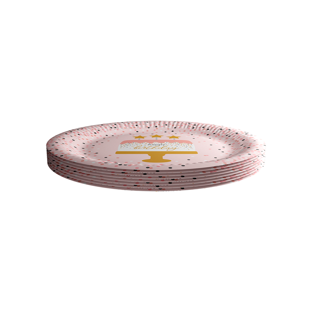 Sada osmi papírových talířků o průměru 22,7cm.