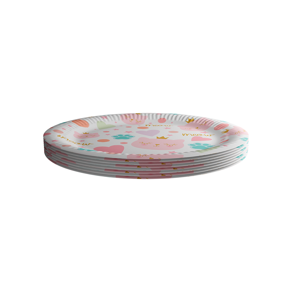 Sada osmi papírových talířků o průměru 22,7cm.