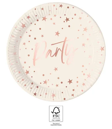 U84892EU | Talířky papírové EKO - Happy Birthday rosegold puntíky 23cm, 8ks |