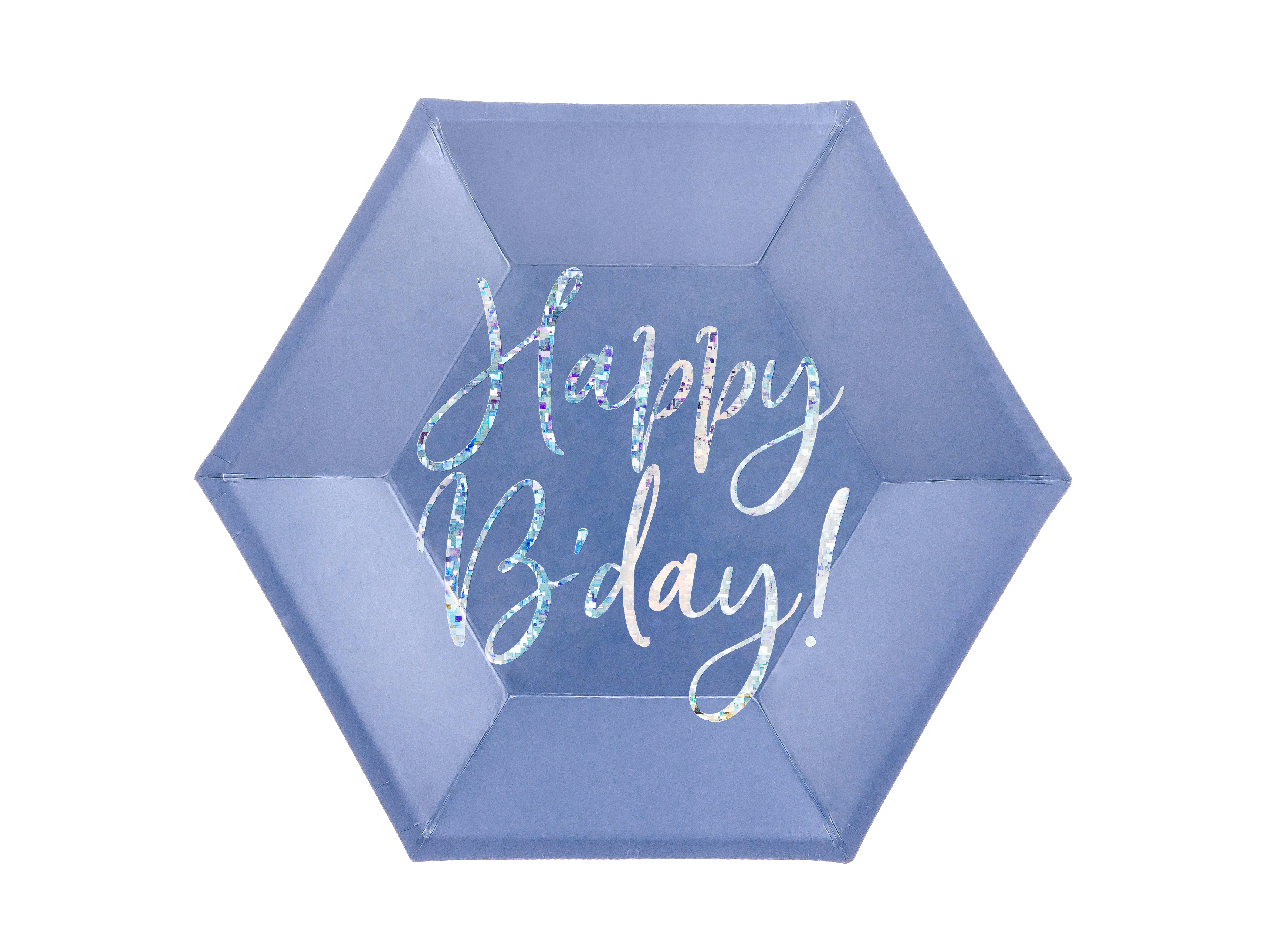 Papírové talířky v modré barvě s lesklým potiskem Happy B'day!