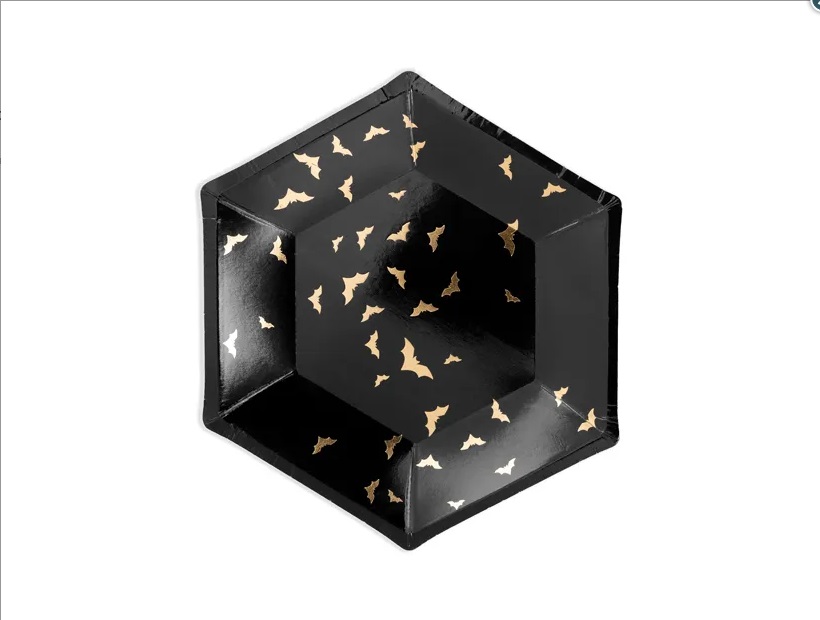 Talířky papírové - Černé s netopýry 20cm, 6ks