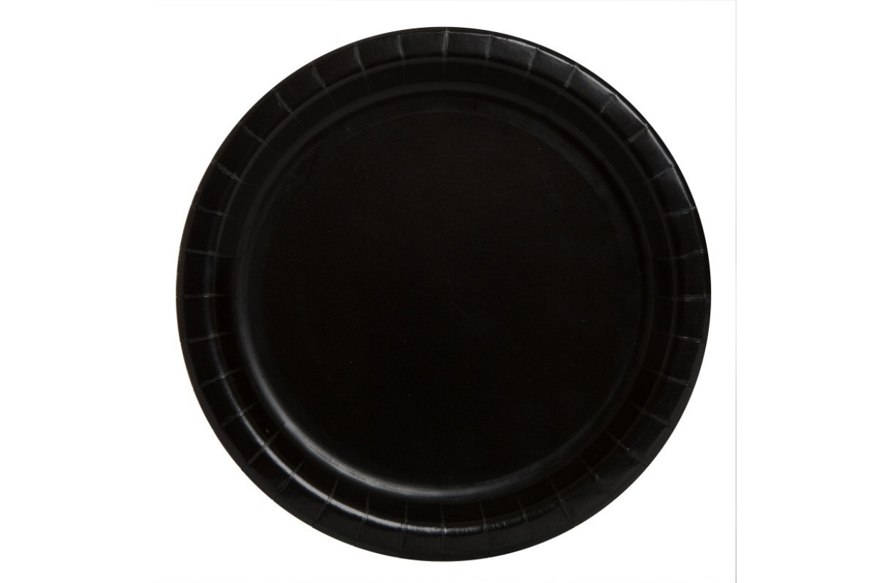 Sada osmi papírových talířků o průměru 18cm v černé barvě.