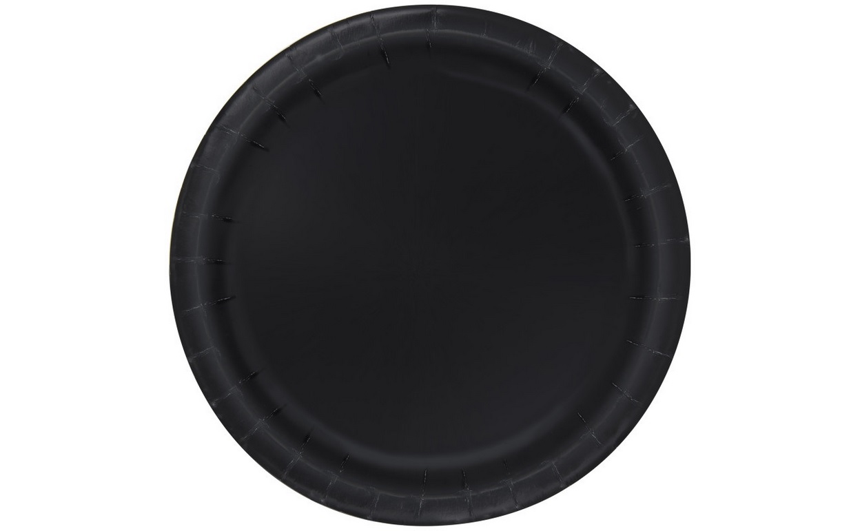 Sada šestnácti papírových talířků o průměru 23cm v černé barvě.