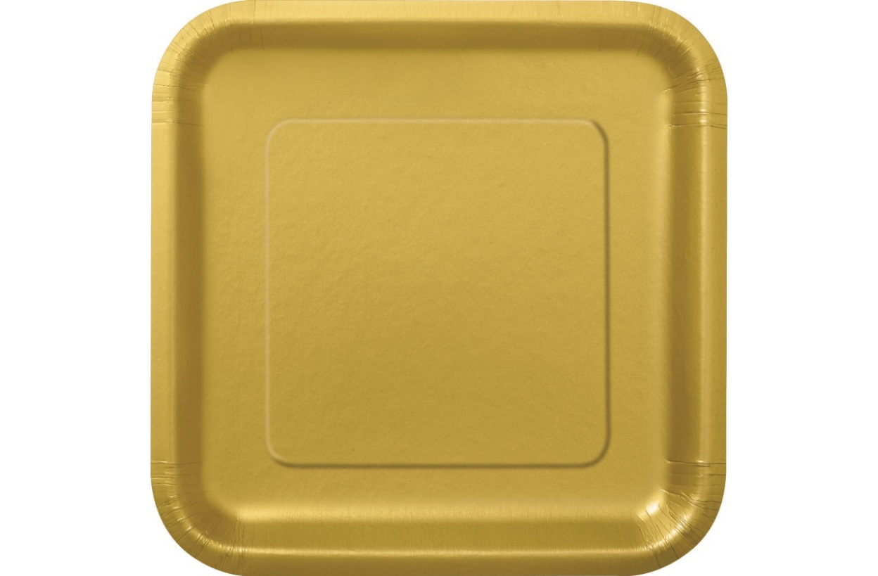 Sada 14 EKO papírových talířků o rozměru 23cm x 23cm ve zlaté barvě.