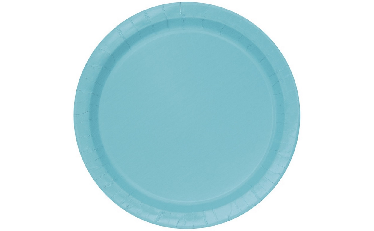 Sada 16 ks papírových talířků o průměru 23cm v modrozelené barvě.