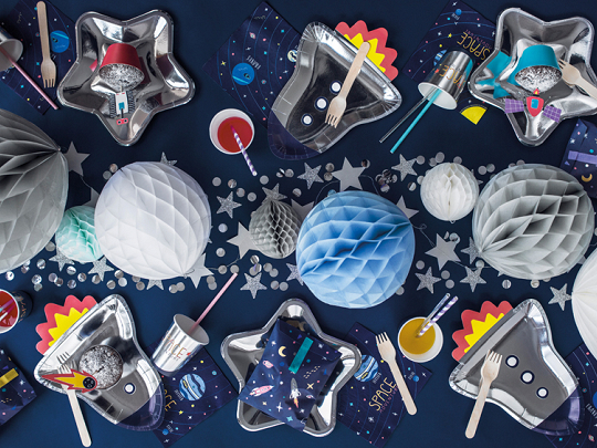 Papírové talíře Hvězdy ve stříbrné metalické barvě.