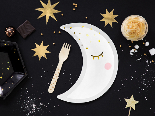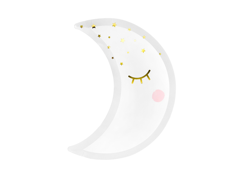 Papírové talíře ve tvaru měsíčku v bílé barvě.