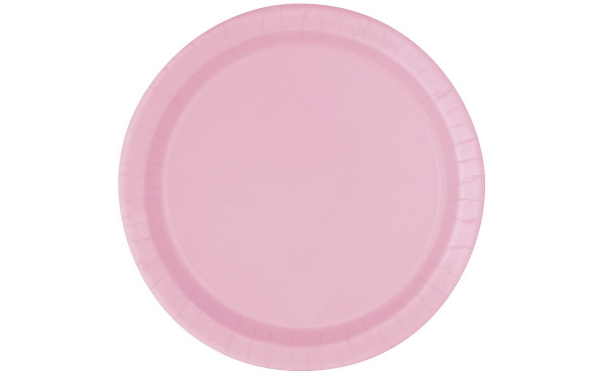 Sada šestnácti papírových talířků o průměru 23cm v růžové barvě.