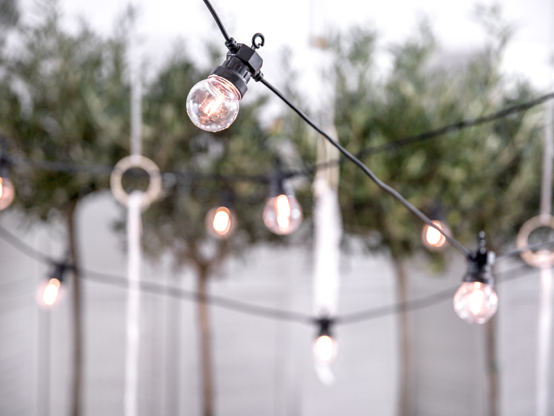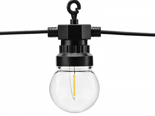 Na šňůře je 10 kulatých žárovek, barva světla - teplá bílá.