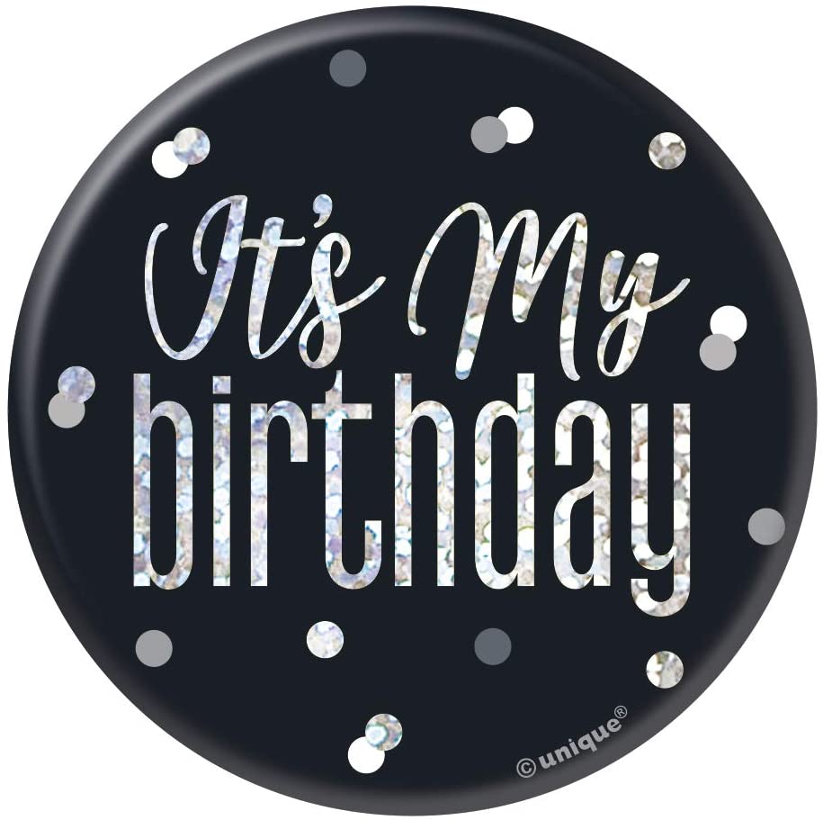 Narozeninová brož v černé barvě se stříbrným nápisem "It´s my birthday!".