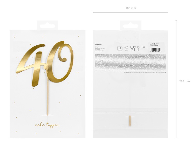Ozdoba na dort ve tvaru číslic 40 ve zlaté barvě, výška ozdoby je asi 20.5cm.