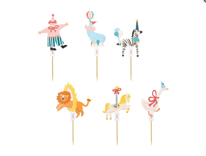Ozdoba na dort v motivu cirkusu, ozdoby jsou cca 9cm až 11,5cm.