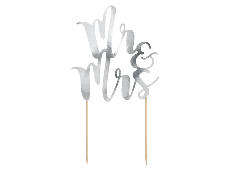 Ozdoba na dort v lesklé stříbrné barvě - nápis Mr&Mrs, výška ozdoby je asi 25.5cm.