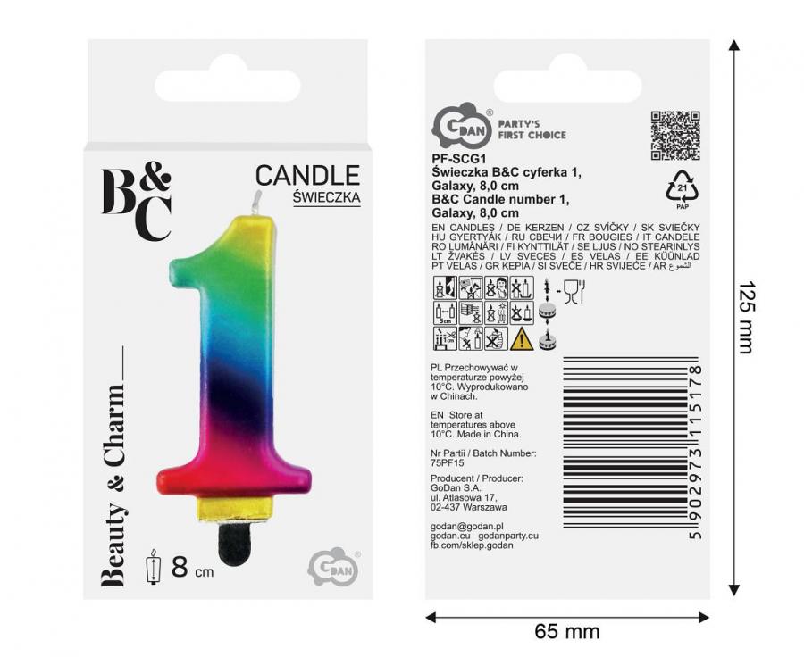 Svíčka dortová číslo 1 GALAXY barevná 8cm - 97518.jpg