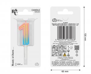 Svíčka dortová číslo 1 NEON barevná 4,4cm