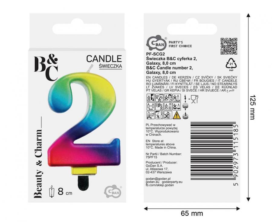 Svíčka dortová číslo 2 GALAXY barevná 8cm - 97519.jpg