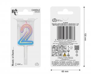 Svíčka dortová číslo 2 NEON barevná 4,4cm