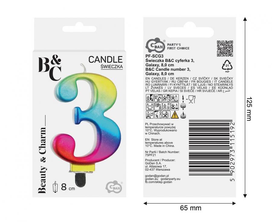 Svíčka dortová číslo 3 GALAXY barevná 8cm - 97520.jpg