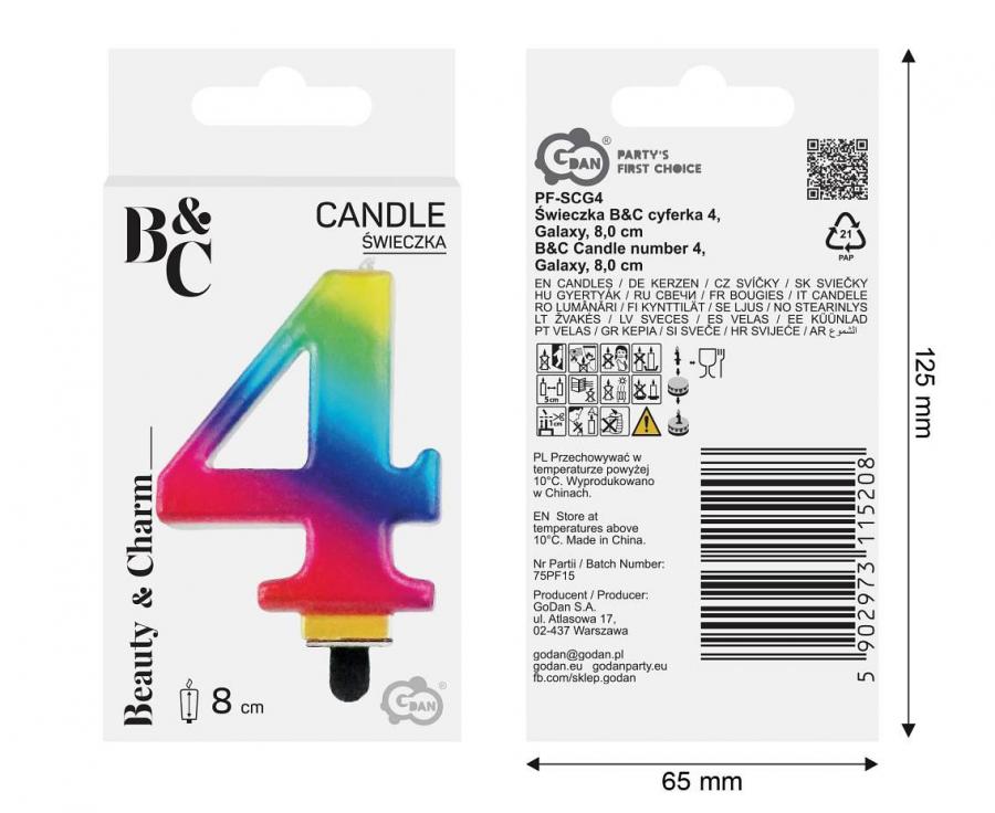 Svíčka dortová číslo 4 GALAXY barevná 8cm - PF-SCG4_2.jpg Svíčka dortová číslo 4 GALAXY barevná 8cm - 97521.jpg