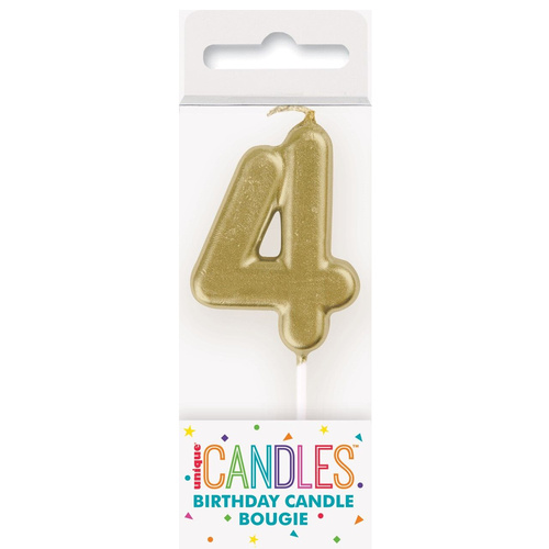 Svíčka ve tvaru číslice 4 ve zlaté barvě, 5cm velké.