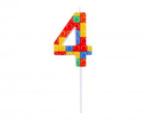 Svíčka dortová číslo 4 STAVEBNICE barevná 10,5cm