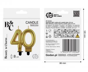 Svíčka ve tvaru čísla 40 ve zlaté metalické barvě.
