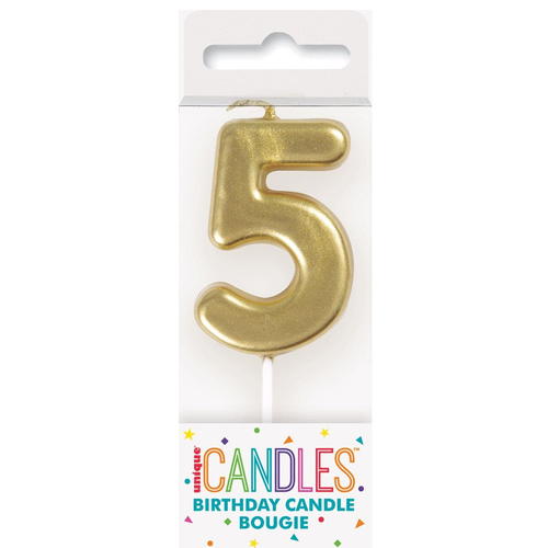 Svíčka ve tvaru číslice 5 ve zlaté barvě, 5cm velké.