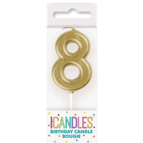 Svíčka ve tvaru číslice 8 ve zlaté barvě, 5cm velké.