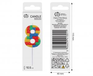 Svíčka dortová číslo 8 STAVEBNICE barevná 10,5cm