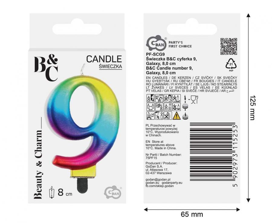 Svíčka dortová číslo 9 GALAXY barevná 8cm - PF-SCG9_2.jpg Svíčka dortová číslo 9 GALAXY barevná 8cm - 97526.jpg