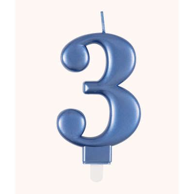 Metalická svíčka modrá, číslo 3. Velikost svíčky je 8cm.