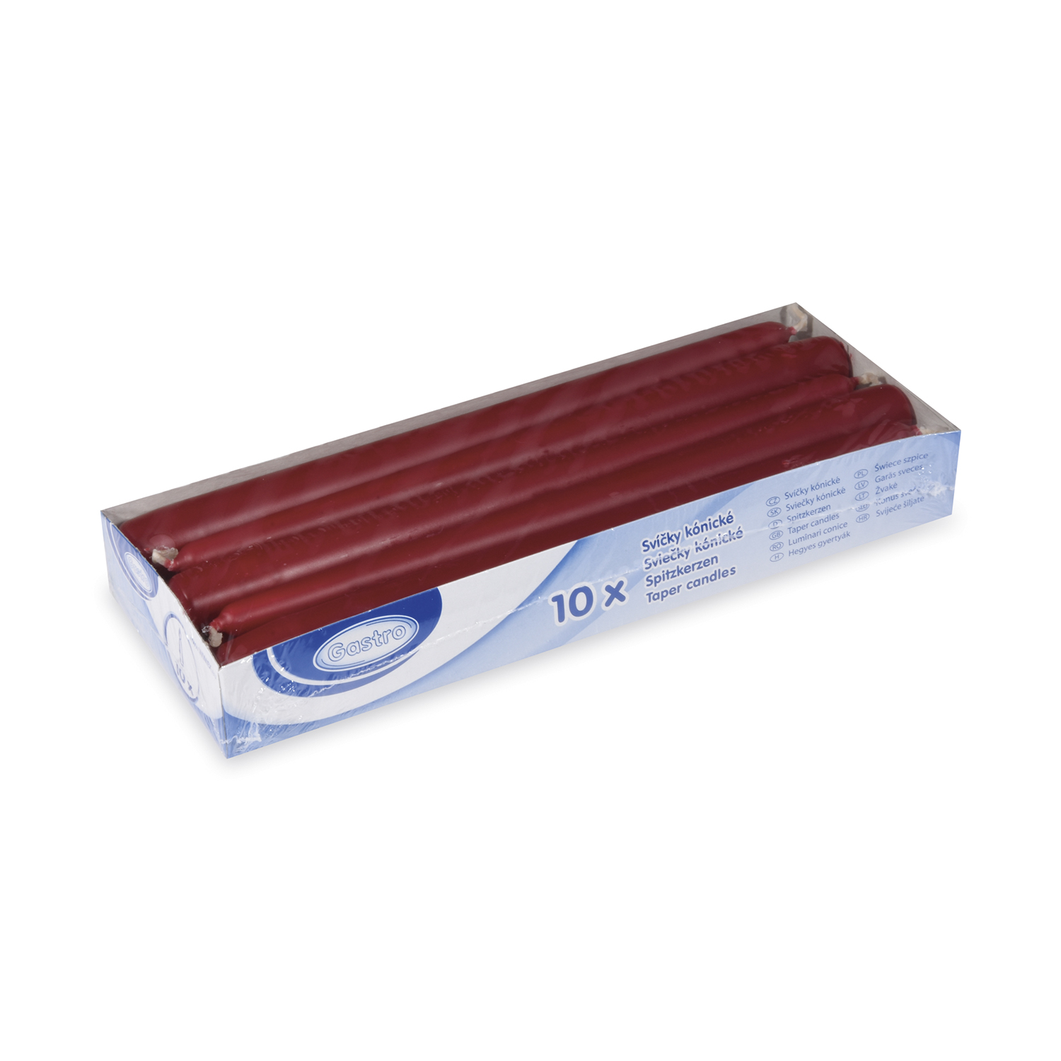 Dlouhá úzká svíčka v bordo barvě, délka je 24cm.