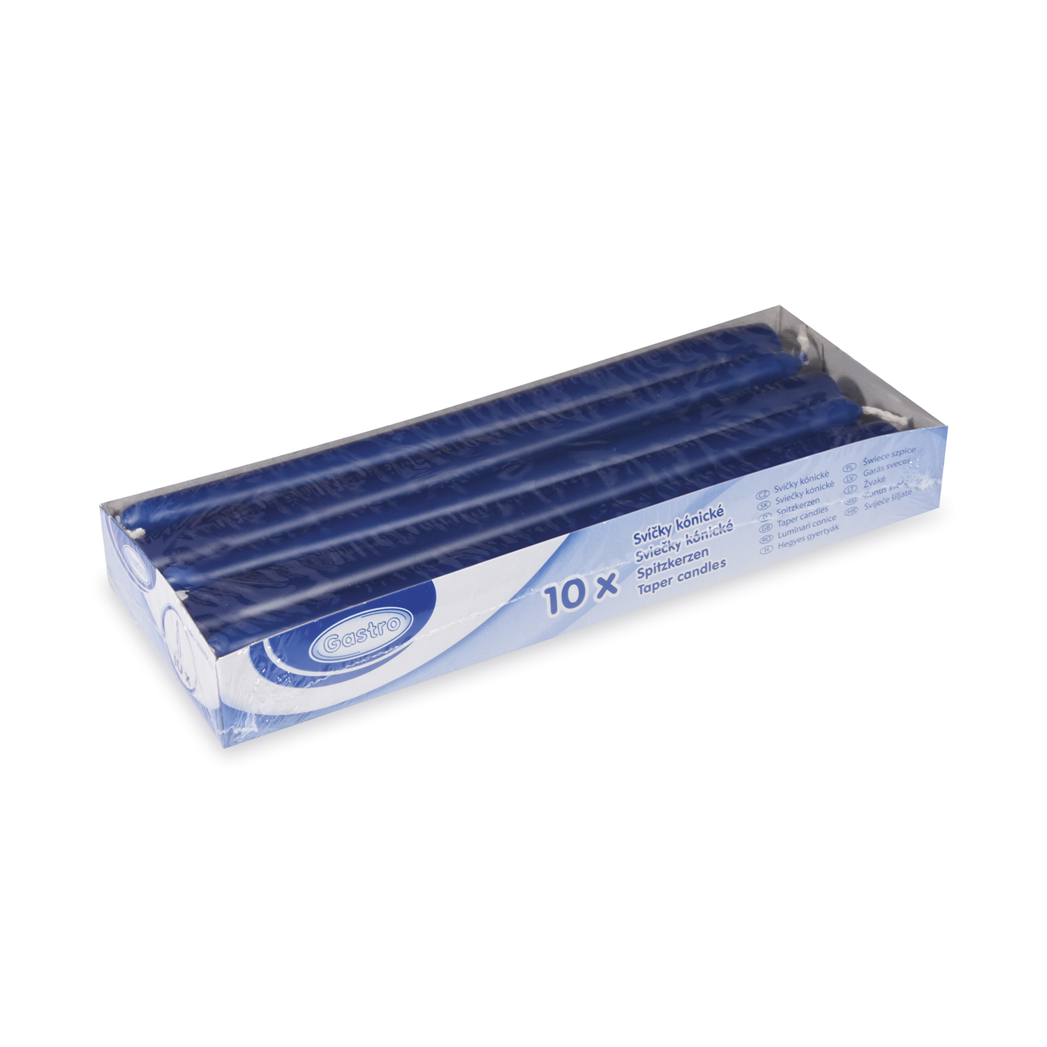 Dlouhá úzká svíčka v modré barvě, délka je 24cm.
