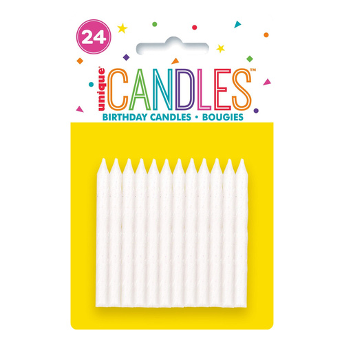 Dortové svíčky v bílé barvě s třpytkami a s duhovým efektem - spirály, 7cm velké.