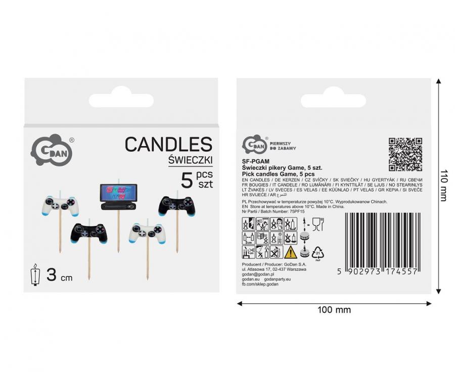 Sada pěti kusů svíček s motivem počítačových her.