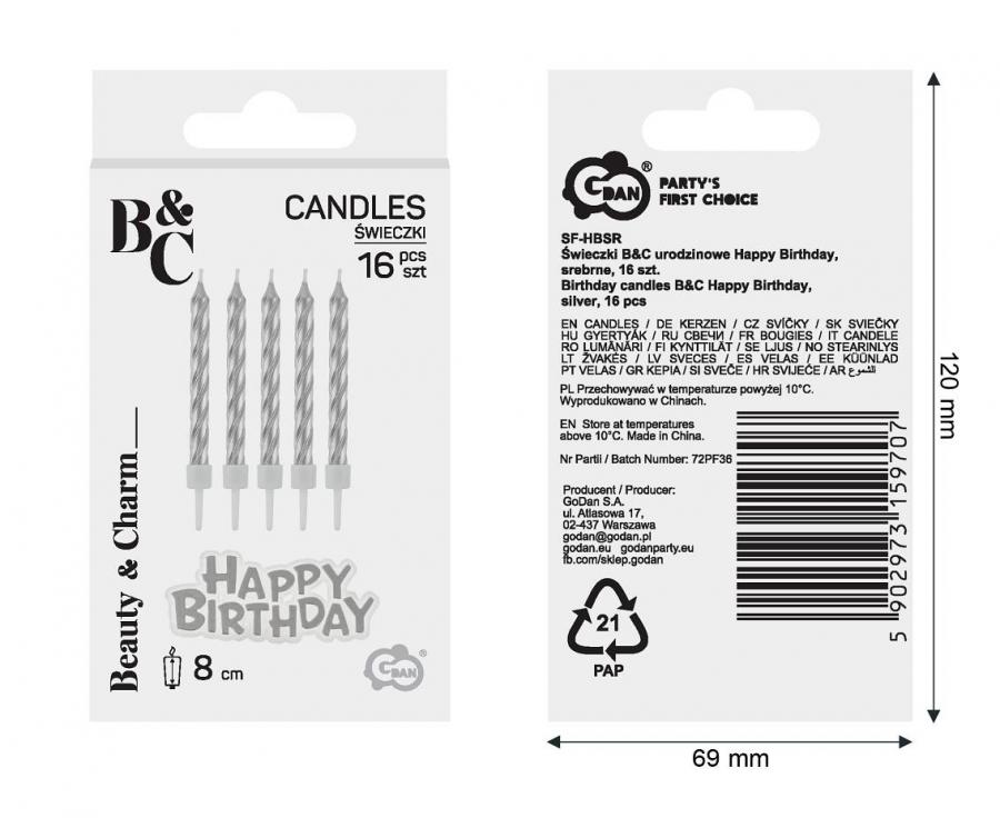 Sada 16-ti ks svíček s nápisem Happy Birthday.