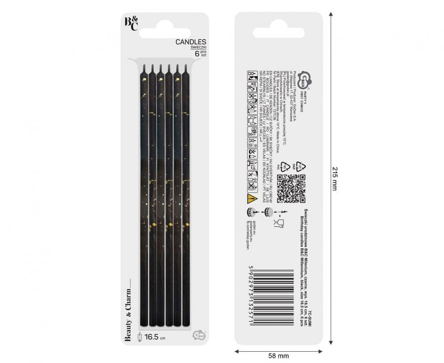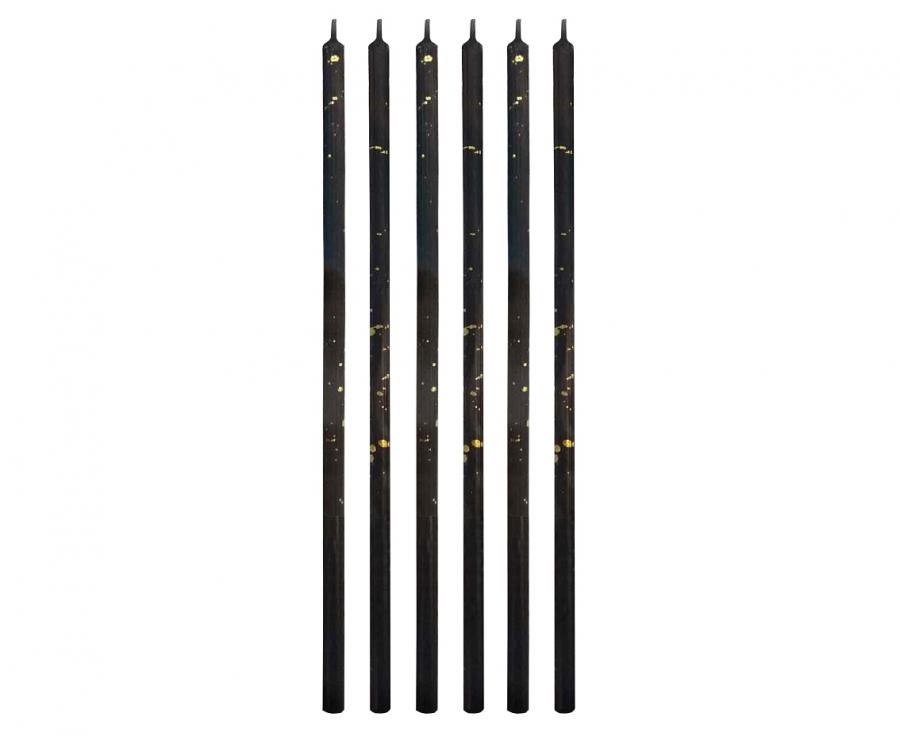 Narozeninová sada 6ks svíček v černé barvě se zlatým mramorováním.
