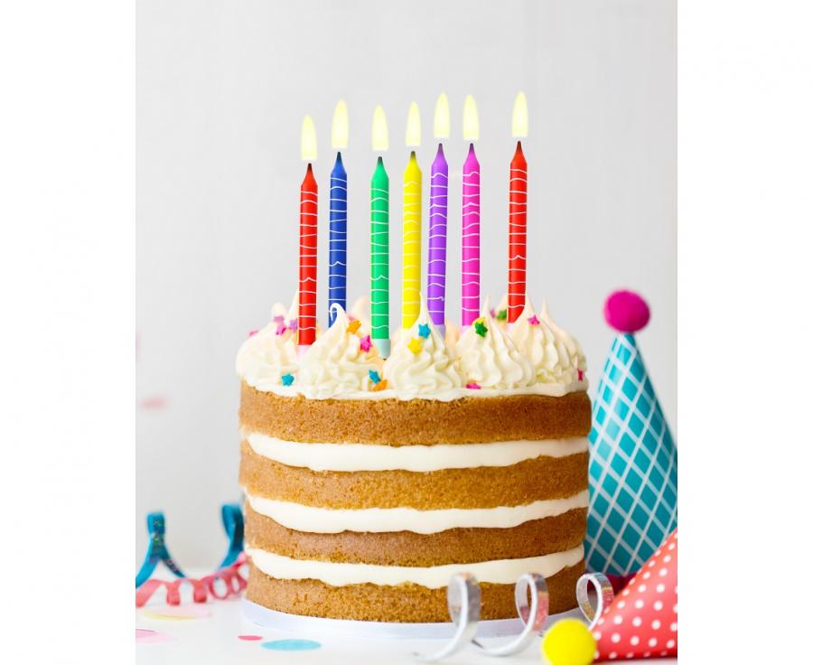 RBP560002A | Svíčky dortové narozeninové s proužky, 24ks, 4 barvy |