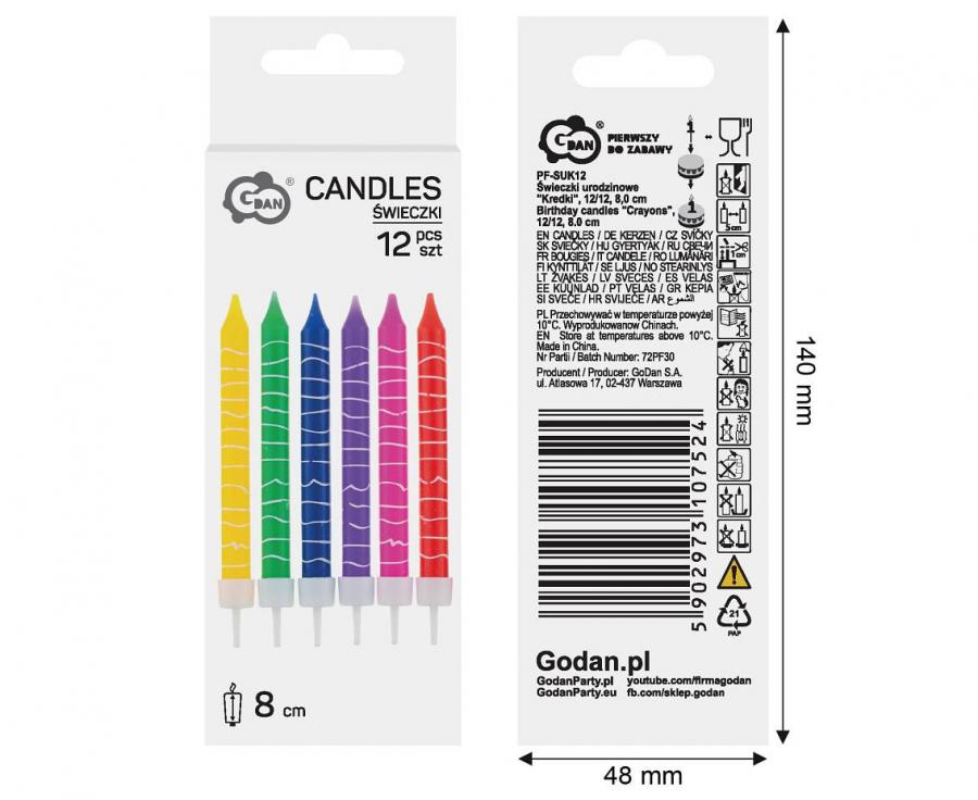 Narozeninová sada 12ks svíček v různých barvách v podobě voskovek.