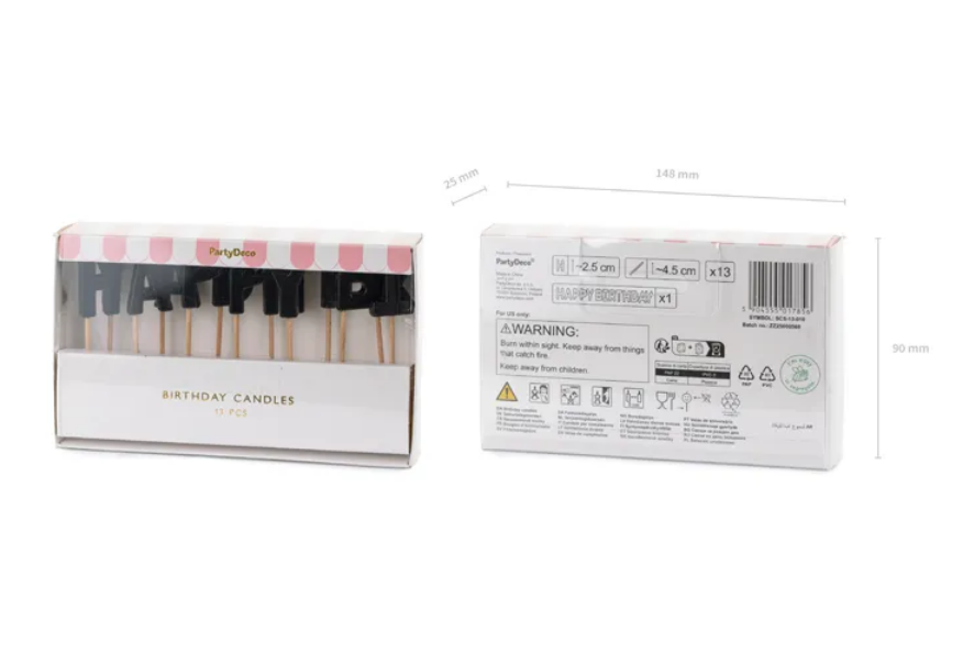 Narozeninové svíčky ve tvaru písmen v černé barvě.