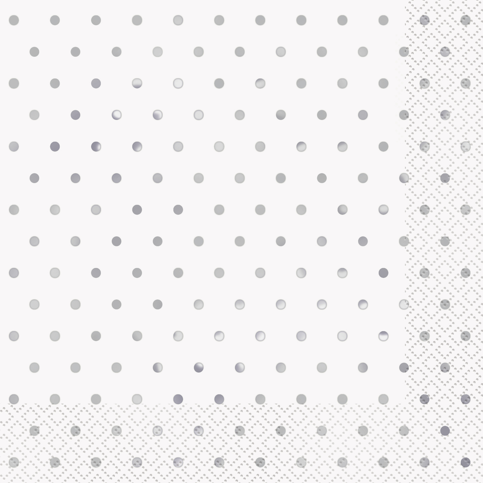 Papírové ubrousky v bílé barvě se stříbrnými puntíky.