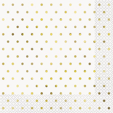 PDSP33-23-008 | Ubrousky papírové bílé "Zlaté puntíky" 33x33cm, 20ks |