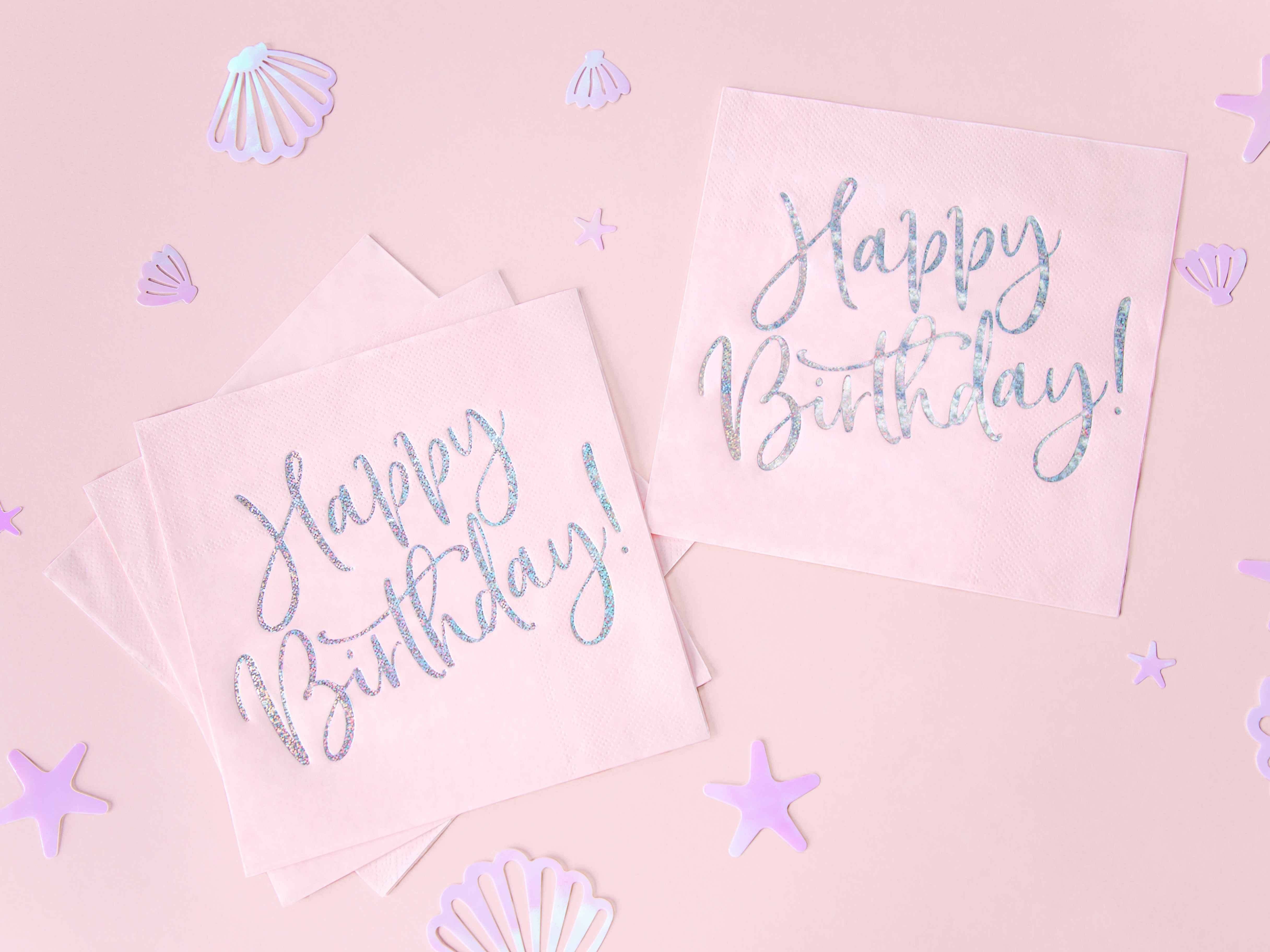 Papírové ubrousky v růžové barvě s lesklým potiskem Happy Birthday, velikost po složení je 33 x 33 cm
